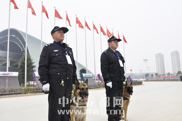 正在巡邏的警犬,承擔第二次運動會的安保工作。