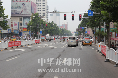 ????據了解,隨著七一路(六一路至中州大道段)的升級改造完成,該路段路面拓寬,通行非常暢通,還增加了很多人性化、都市化的設施:雙向4車道變成雙向9車道,路口的紅綠燈變成雙信號燈(圖一),取消了安全島,重新施劃了非機動車道和行人斑馬線(圖二),增加了左轉帶調頭標線等。
