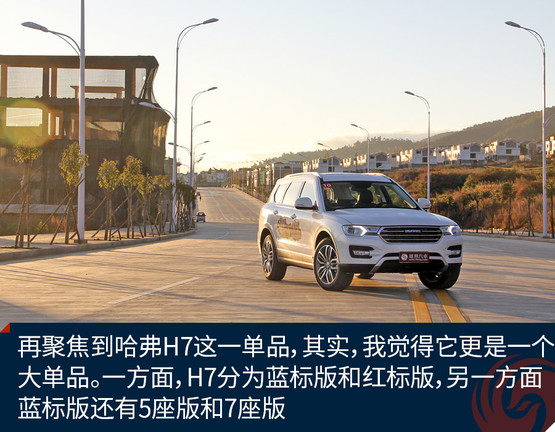 再聚焦到哈弗H7這一單品,其實,我覺得它更是一個大單品。一方面,H7分為藍標版和紅標版,另一方面,藍標版還有5座版和7座版。關于定位,紅標5座,大氣、豪華;藍標5座,時尚、運動;藍標7座,沉穩、硬朗。據悉,未來不排除推出紅標7座版車型,具體需要根據市場反饋來決定。