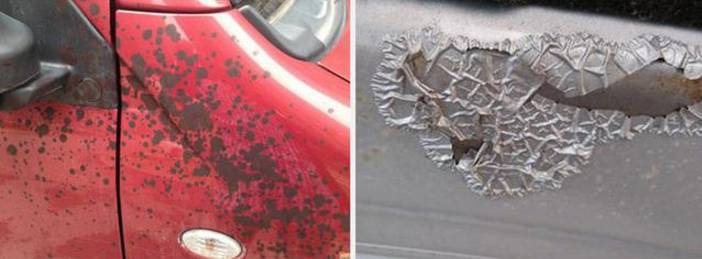 ????????酸性的雨水落到車上,雨水會被蒸發,但酸性的物質可能還會留在你的車身表面,時間一長便會腐蝕你的車漆。