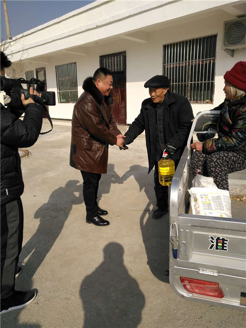 中華龍都網訊(周口報業全媒體記者張勁松文/圖)2月13日,農歷臘月二十八,東莞市河南商會會長、東莞市昶宏集團董事長、周口市東新區許灣鄉葉莊行政村村主任熊茂禮千里回鄉,走訪慰問村里49家貧困戶,為他們送去了米、面、油等慰問品和慰問金,并送上了新年的祝福。