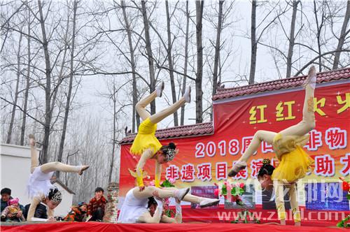 中華龍都網訊(周口報業全媒體記者 梁照曾 文/圖)2月28日上午,2018年周口市非物質文化遺產保護中心非遺項目展演展示助力扶貧暨慶賀元宵節活動,在鄲城縣巴集鄉徐樓行政村舉行。精彩的非遺項目表演,讓徐樓村村民享受一場文化盛宴。