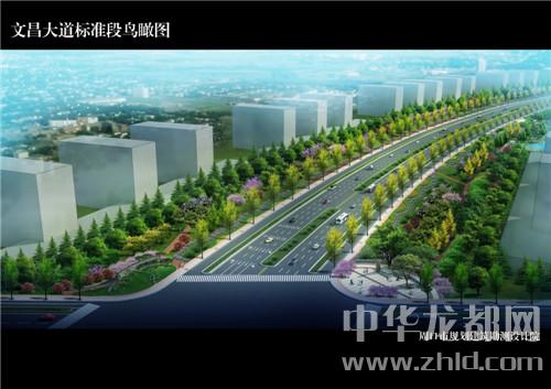 據東新區規劃建設環保局副局長楊帥兵介紹,此次施工時間從3月6日開始,預計6月20日結束。升級改造后的文昌大道(紅線加綠線)寬度為160米,斷面形式為中央6米綠化帶,中央綠化帶兩側各為寬度14米的快車道,快車道規劃為雙向八車道。快車道兩側各為寬度3米的機非分隔帶,機非分隔帶兩側為寬度5.5米的慢車道,慢車道兩側各為寬度4.5米的人行道。在人行道兩側,就是寬度為50米的景觀綠化帶??燔嚨涝O計速度為50公里/小時,道路設計使用年限為15年。