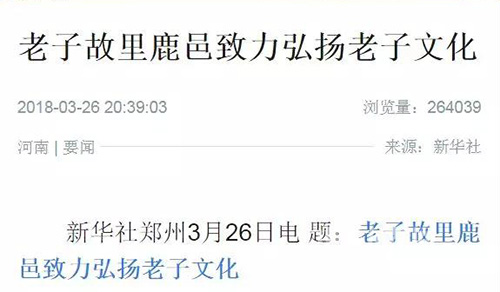 中華龍都網訊(周口報業全媒體記者 李瑞才 文/圖)再過幾天(本周六),就是老子誕辰2589周年了。為進一步推動老子文化與縣域建設深度融合,把老子文化這張牌打響擦亮,2016年年初鹿邑縣恢復舉辦了“老子生日拜典暨河南省非物質文化遺產展演系列活動”這一文化盛事,使得老子故里的文化感染力和影響力不斷增強。今年3月31日至4月30日(農歷二月十五日至三月十五日),鹿邑將繼續在縣城和太清宮景區舉辦2018年老子文化系列活動。連日來,新華社、人民網、光明網等中央主流媒體再次聚焦鹿邑,紛紛為老子故里這一文化旅游產業發展盛事宣傳造勢……