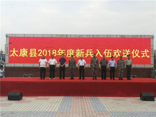 在人民廣場舉行2018年新兵入伍歡送儀式上,縣委常委、副縣長張保華代表縣委、縣政府向新征入伍的青年們表示熱烈的祝賀!向積極送子參軍、支持國防事業的青年家屬表示崇高的敬意!他說,每個人都有英雄夢、軍營夢,今天太康的熱血男兒投身軍營,傳承紅色基因,踏上熱血征程,在大家的身上看到了太康優秀青年的風采,看到了青春飛揚的激情,也看到了對國、對家的赤膽忠誠。希望新兵同志胸懷大志,用習近平強軍思想武裝頭腦,認真踐行“忠誠于黨、熱愛人民、報效國家、獻身使命、崇尚榮譽”的當代革命軍人核心價值觀,珍惜榮譽,服從指揮,勤學苦練,磨礪意志,堅決做到聽黨指揮、能打勝仗、作風優良,以過硬的本領、良好的表現、優異的成績為太康爭光,為實現中國夢強軍夢做出應盡貢獻。