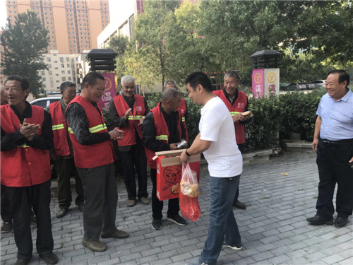 9月24日中秋節當天,西華縣城市管理局班子成員及局屬各單位負責人共同對一線城管工作人員進行現場慰問,向他們送去月餅、礦泉水等節日禮品,在中秋節送上節日祝福。