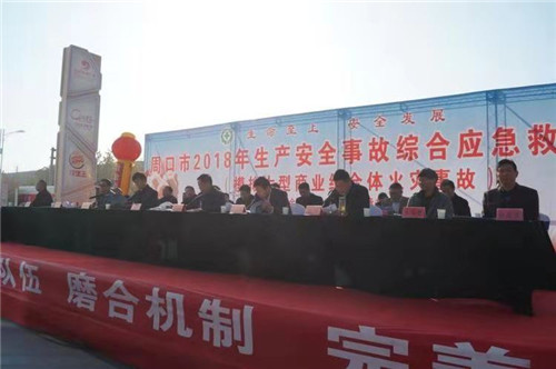 11月23日上午,周口市大型商業綜合體火災事故應急救援綜合演練活動在淮陽縣天鴻世貿商場舉行。市政府副秘書長馮干敏,市安委會副主任、安監局局長胡恩勇,市消防支隊副支隊長李華兵,淮陽縣委書記馬明超,縣長王毅,以及各縣(市)區主管安全工作的政府領導出席演練觀摩活動。淮陽縣政府應急辦、消防大隊、安監局、公安局、衛計委、環保局、住建局、天鴻世貿有限公司等20余家單位300余人參與演練活動。