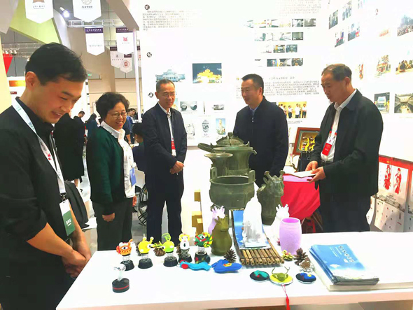 市博物館展位圖板展示了周口市博物館的基本情況,常設(shè)展覽《宛丘之上一一周口歷史文物陳列》,裴李崗文化石磨盤、戰(zhàn)國錯金越王劍等鎮(zhèn)館之寶,社會教育情況,淮陽太昊陵、鹿邑太清宮等周口市主要文物景點,以及文創(chuàng)產(chǎn)品華威民俗博物苑漢畫拓片、周口解氏仿古青銅器、周口關(guān)帝廟木版年畫、淮陽泥泥狗等,開幕當天深受廣大觀眾好評。