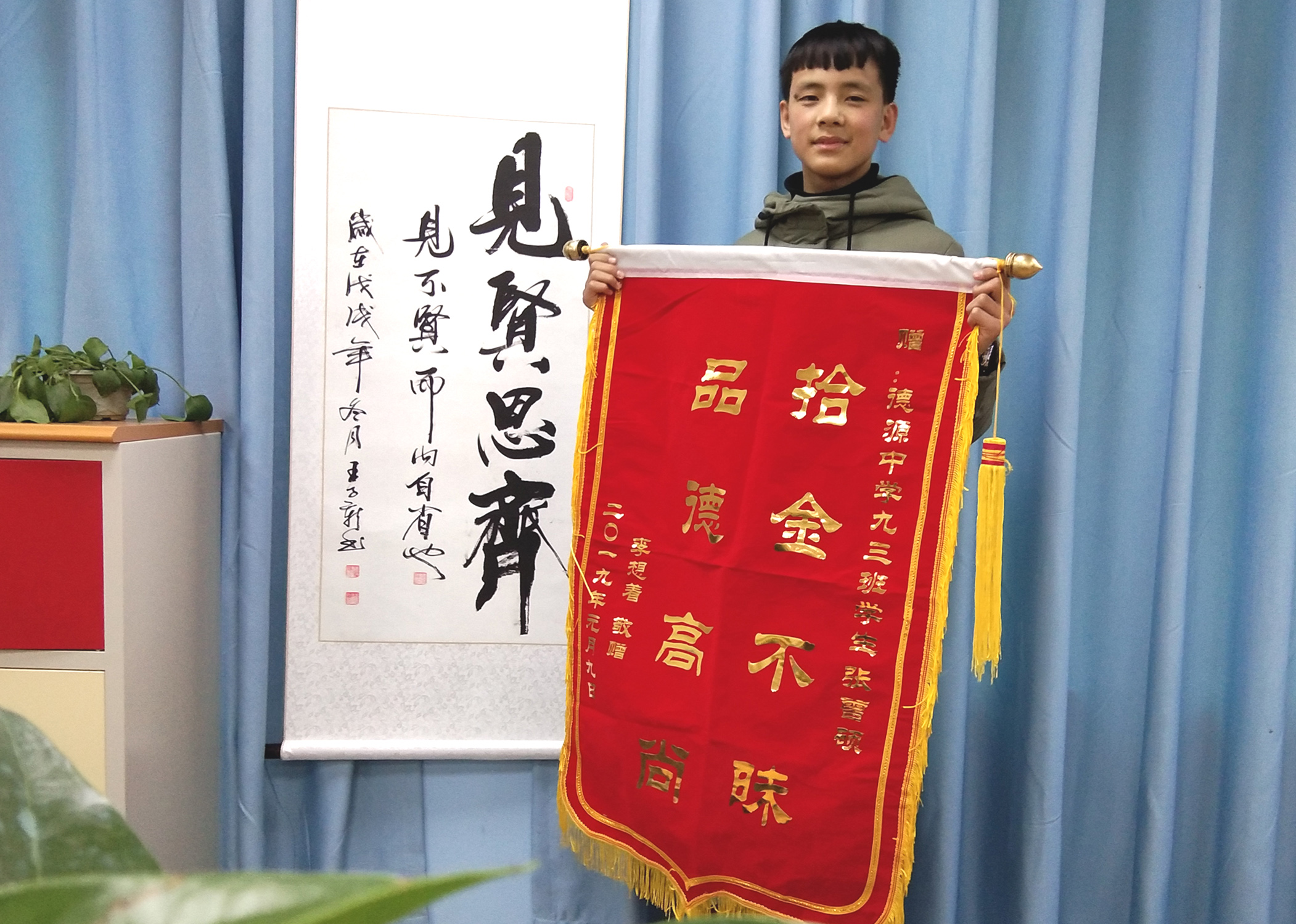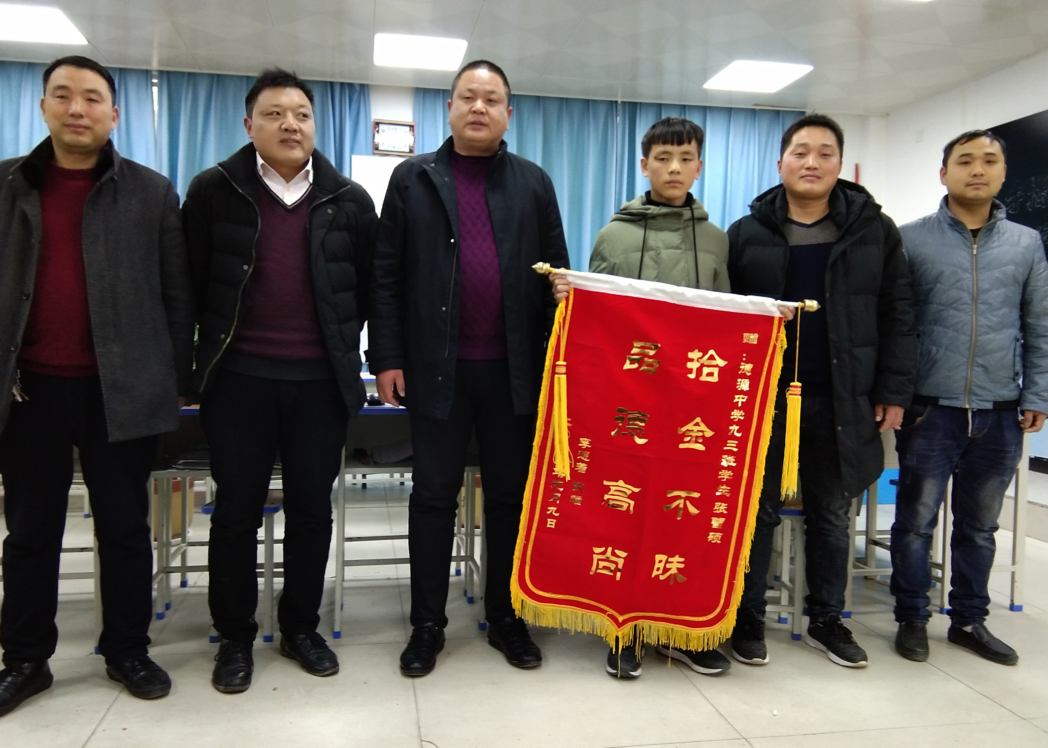 “我還以為找不回來了,里面除了錢還有那么多重要的證件,真的太重要了,我中午急著辦事情飯都吃不下!”下午3時,失主李想著手拿一面加急制作的錦旗來到學校向張曾碩和尹紀偉老師表示感謝。他說,能有這樣品質高尚、拾金不昧的好孩子,是老師精心培養、父母言傳身教的結果。