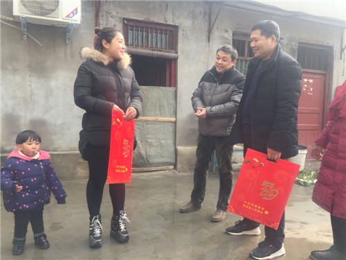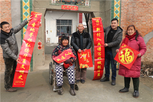 1月16日,西華縣艾崗鄉鐵爐村村民馬永清接過該縣縣委宣傳部駐村扶貧干部送來的春聯喜上眉梢。據了解,今年春節前夕,該縣財政投入200余萬元購置80萬副春聯在全縣鄉村范圍內廣泛開展贈春聯、送祝福活動。