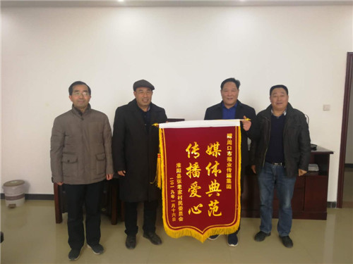 “傳播愛心,媒體典范”“為民解憂愁,心系千萬家”。1月25日上午,淮陽縣劉振屯鄉張老家行政村村支書張紀全專程趕到周口,給周口報業傳媒集團、周口市啄木鳥志愿者服務工作委員會送來兩面錦旗,表達他們的感激之情(如圖)。
