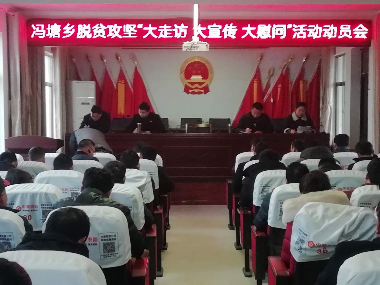 1月28日上午,淮陽縣馮塘鄉黨委、政府在鄉政府會議室召開全體鄉干部、駐村書記(隊長)、支部書記及信息員會議。會議就脫貧攻堅“大走訪、大宣傳、大慰問”活動、人居環境整治、農戶改廁等工作進行專門部署。