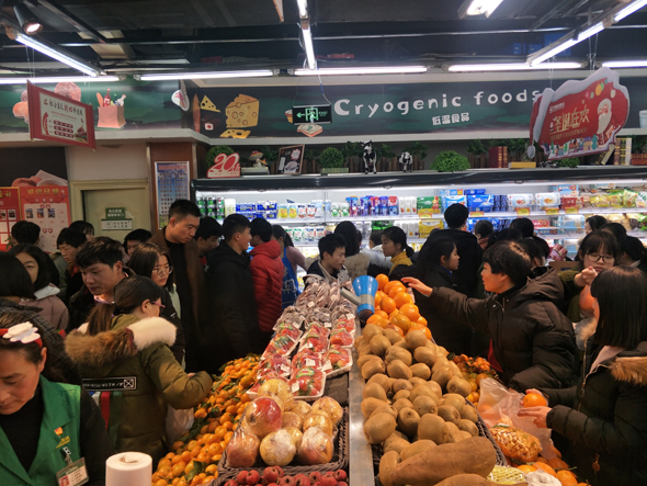 記者在采訪中看到,位于七一路中段的萬(wàn)果園小時(shí)代店人頭攢動(dòng),不管是百貨還是超市都備足了貨源,供市民采購(gòu)。