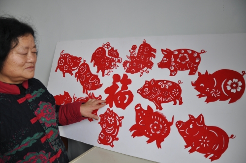 隨著農歷己亥豬年新春的臨近,商水縣民間工藝大師王春梅借鑒傳統民俗技法,精心創作出一幅富含新意的豬年迎春剪紙《瑞豬鬧新春》。該作品由12只神態各異的瑞豬組成,構圖巧妙、圖案新穎、寓意深刻,表達了人們新年對國家繁榮昌盛、人民富裕小康的美好祝福。