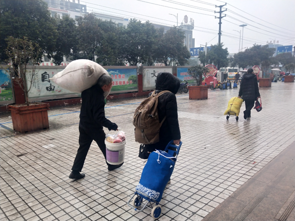1月30日,農歷臘月二十五,上午下起了大雨,在周口汽車客運總站,一些從外地返鄉的乘客加快了回家過年的步伐。