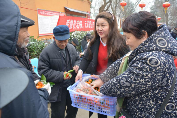 據了解,此次開展“愛灑敬老院、元宵暖心田”公益活動的發起人,是剛剛獲得商水縣“道德模范”的愛心人士劉玉英。劉玉英是一名中共黨員,她早年外出務工,近幾年返鄉后任職某保險公司。經常關愛留守兒童和老人、對親戚鄰居慷慨相助,她還加入了“周口義工”團隊,踴躍參加當地“省運會”“殘運會”義務服務活動。“一個人的愛心是有限的,這次自愿報名參加人員都是愛心企業家,盡管他們工作都很忙,一聽說要去敬老院給老人送元宵都親自來了。”劉玉英介紹說,“我們帶來了精心挑選的6件黑芝麻水果元宵、4件蘋果、4件砂糖橘、2件柚子、4件香蕉、2件雪梨,還有市區‘亨達果品’水果店老板獻愛心捐贈的一箱西瓜,盡管這些東西價值只有1000多元,但畢竟是大家的一片心意!”