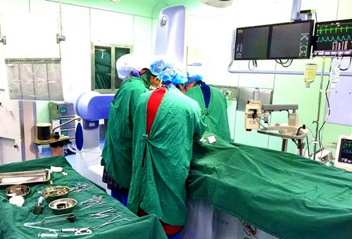6時40分,護送患者的救護車從張完鄉出發,沿醫共體縣鄉救治“綠色通道”直達縣人民醫院胸痛中心,人民醫院郭環宇醫生帶領介入團隊早已萬事俱備……入院后80分鐘,完成造影并開通血管,患者脫離生命危險。術后患者胸痛立刻緩解,生命體征平穩,手術成功。