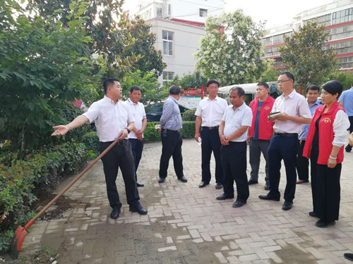 6月13日下午,周口港區黨委書記孫紅偉到港區郅樓行政村空氣質量自動監測站和未來家園安置社區,檢查大氣污染防治和創衛工作,港區黨委委員張東立陪同。