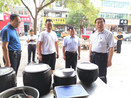 在新城路沿街門店,馬衛東邊走邊看邊聽取有關負責人的情況介紹,對存在和現場發現的的問題逐一梳理分析,并及時 提出整改意見。
