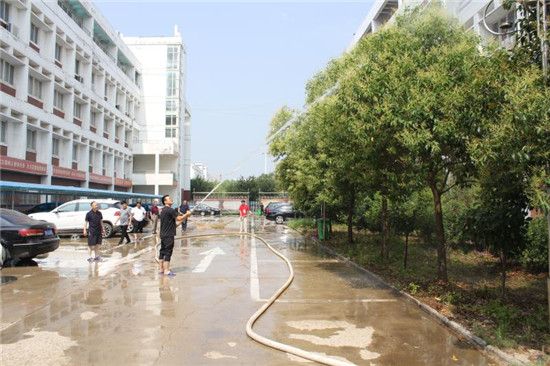 雖然天氣炎熱,大家汗流浹背,卻熱情高漲,積極性很高,大家紛紛拿起掃帚、抹布,提上水桶,充分發揚不怕臟、不怕累的精神,對院內道路、車棚、宣傳欄、綠化帶等處進行沖洗、清掃,同時對各樓層門窗玻璃、消防栓、廁所等進行集中清理……經過兩個多小時的辛勤勞動,各辦公室窗明幾凈,廁所衛生干凈整潔,車棚車輛擺放整齊,院內環境煥然一新。