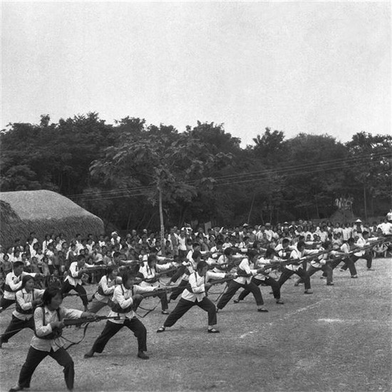 全民皆兵作為貫穿在毛澤東時代的一個最具中國特點的社會景觀,留下了許多值得回味的畫面。廣大農民和工人亦兵亦民、亦工亦兵,拿起鋤頭是莊稼漢,走進車間是工人,拿起槍桿就是一個兵。民兵訓練在正規軍人的指導下利用農閑時間,采取小型、就地、分散的方法進行,主要訓練課目有隊列、刺殺、步槍射擊、投手榴彈、簡易單兵戰術、站崗放哨等。