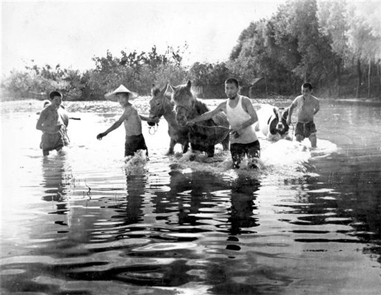 “75·8”大洪水西華、項城受災最為嚴重,災區的村民把牲畜趕到大堤上。(圖片來源:劉明和)