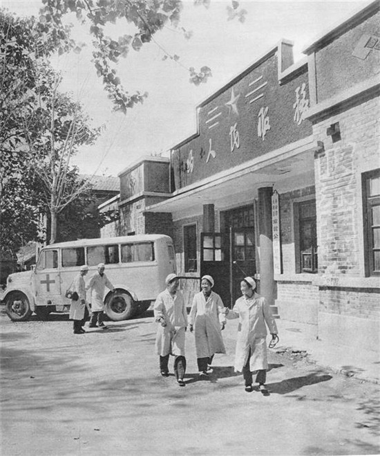 1975年6月,太康常營公社衛生院。 1987年,河南人民出版社《周口地區衛生志》記載:70年代以后,各級衛生行政部門制訂計劃,從人力、物力、財力三方面加強裝備公社衛生院特別是重點公社衛生院。地區規定,一般衛生院人員配備19人~25人,重點衛生院配備29人~35人,床位25張~35張。到1977年,全區已建成并裝備了公社(鎮)衛生院180個,其中重點衛生院50個。1993年,中州古籍出版社《太康縣志》數據統計,從建國至1975年,太康陸續建設22個衛生院。常營公社衛生院成立于1958年6月。 (圖片來源:圖書《Former yellow river flood area transformed》中文名《黃泛區變化》)
