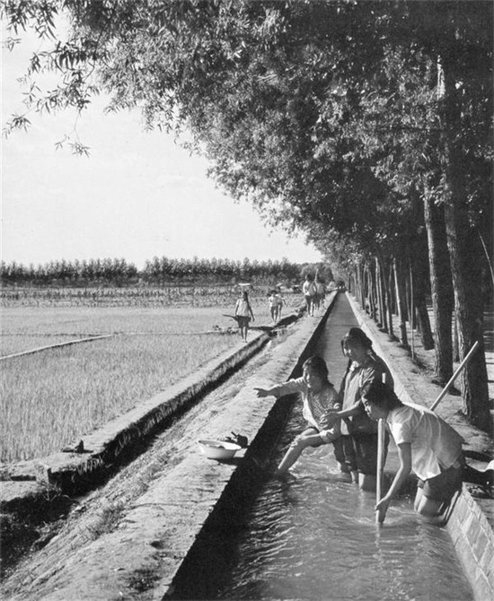 1975年6月,商水到周口公路兩邊的農業水利干渠。 上世紀70年代,大批上海知識青年來到周口、商水、淮陽,進行“上山下鄉”鍛煉,他們曾在商水利用干渠灌溉特點試驗種植水稻。現在,淮陽縣檔案館還存有一批知青報到的花名冊。 (圖片來源:圖書《Former yellow river flood area transformed》中文名《黃泛區變化》)