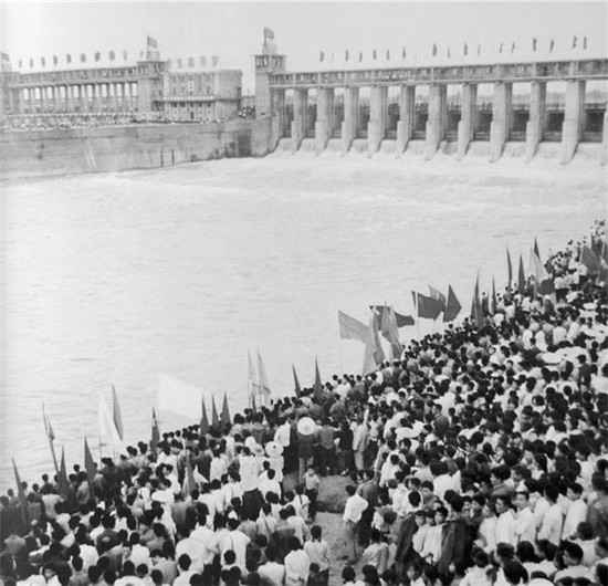 1975年7月1日,周口大閘竣工時的盛況。照片由葛慶亞拍攝。