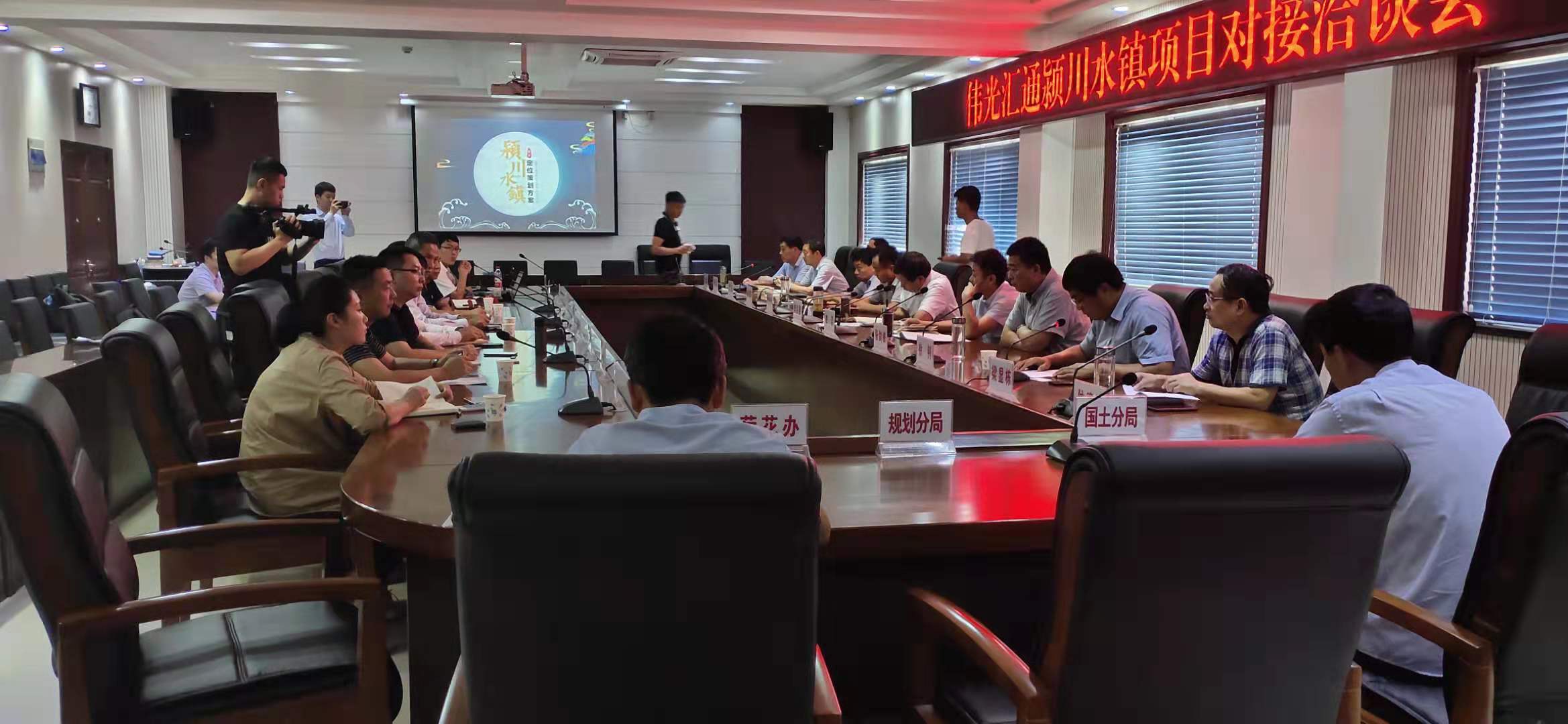 會議播放了偉光匯通企業宣傳片,聽取了潁川水鎮項目概念性策劃方案介紹。雙方圍繞潁川水鎮項目進行了深入洽談交流。