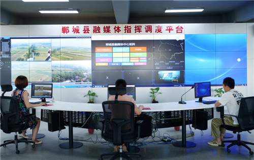 “要扎實(shí)抓好縣級(jí)融媒體中心建設(shè),更好地引導(dǎo)群眾、服務(wù)群眾。”作為省級(jí)媒體融合示范縣,鄲城縣委、縣政府高度重視媒體融合發(fā)展,縣委書(shū)記羅文閣、縣長(zhǎng)李全林多次深入融媒體中心建設(shè)現(xiàn)場(chǎng)調(diào)研指導(dǎo)工作,并提出殷切期望。要求縣委宣傳部、融媒體中心組織專(zhuān)人負(fù)責(zé)、專(zhuān)業(yè)專(zhuān)攻、專(zhuān)題研究,走出去學(xué)習(xí)先進(jìn)、坐下來(lái)結(jié)合實(shí)際、多動(dòng)腦探索創(chuàng)新,“鄲城縣融媒體中心”于2018年10月建成,躋身全市融媒體建設(shè)第一方陣。2018年11月,河南省縣級(jí)新時(shí)代文明實(shí)踐中心、志愿服務(wù)中心、融媒體中心建設(shè)現(xiàn)場(chǎng)會(huì)在鄲城縣召開(kāi)。