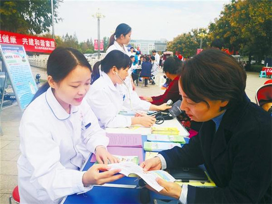 10月10日是世界精神衛生日,當日上午9時至11時,周口市衛健委組織我市28家醫院在川匯區文化廣場舉辦主題為“心理健康社會和諧,我行動”的義診活動?;顒蝇F場,100多名醫務人員向群眾提供免費疾病咨詢,宣傳普及精神衛生健康醫學知識,紛紛開出身心健康處方,受到群眾的熱烈歡迎。