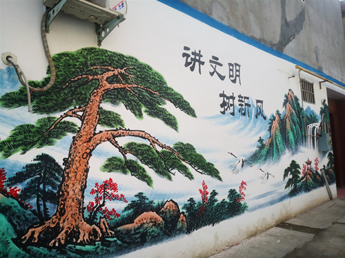 據了解,“創衛”以來,楊莊自然村陳積多年的垃圾徹底清除,主干道路面全部硬化。根據該村巷子特點,共打造了“忠孝巷”、“和諧巷”、“明禮巷”等7處主題鮮明的巷子,在毗鄰道路的墻體以及間距較寬的巷子兩邊墻壁,繪制出主題突出的大型畫作,在間距較窄的巷子則以展板的方式懸掛圖文并茂的社會主義家庭文明新風尚等內容。