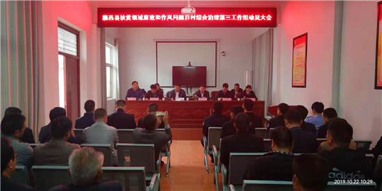 韓林強調,脫貧攻堅是全黨、全國的大事,是黨的十九大作出的重大決策部署,是決勝全面建成小康社會,全面建設社會主義現代化國家的重大歷史任務,是新時代“三農”工作的總抓手。要通過扶貧領域腐敗和作風問題百村治理,持續凈化脫貧攻堅環境,提升脫貧攻堅整體士氣,要堅決查處村黨員干部違法違紀問題,嚴厲打擊黑惡勢力。工作組要對阻礙脫貧攻堅,侵害群眾利益、危害社會治安、擾亂基層秩序、損害發展環境、破壞基層選舉、橫行鄉里、為非作歹、欺辱百姓、敗壞社會風氣的村霸和宗族黑惡勢力依法開展整治。以強有力的陣勢堅決打擊害群之馬,堅決剎住歪風邪氣,堅決鏟除地痞村霸,增強人民群眾安全感,鞏固黨的執政基礎。