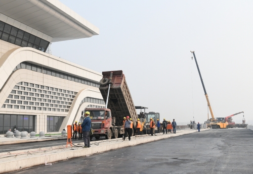 11月8日下午,記者再次來到鄭阜高鐵周口東站,看到一片熱火朝天的施工景象。伴隨著高鐵即將開通,工人緊張施工,施工進度一天一個樣,確保如期交付使用。圖一落客平臺進入鋪油階段。圖二站前廣場緊張施工中。圖三候車大廳進入精細化保潔。
