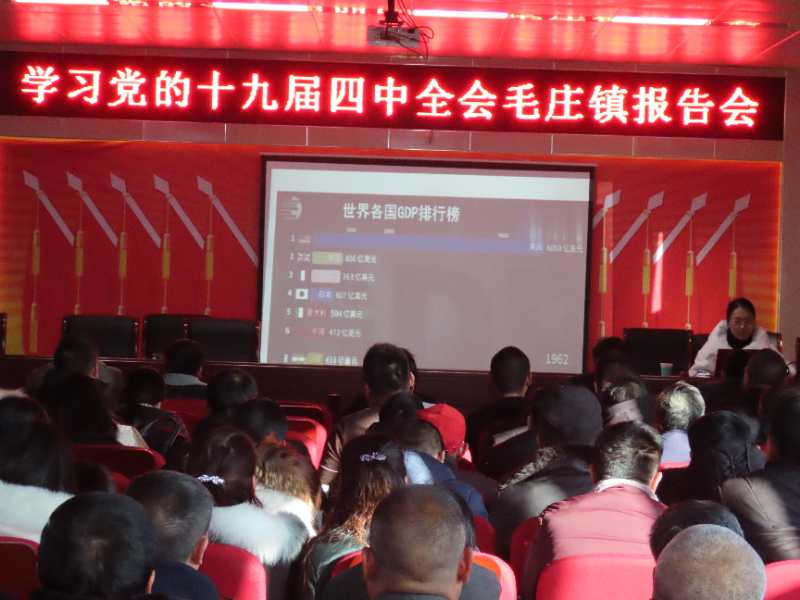 2019年12月31日下午,太康縣毛莊鎮在政府四樓會議室舉行學習黨的十九屆四中全會精神報告會,鎮全體干部職工、鎮直各單位負責人、村兩委干部、駐村第一書記參會。會議由宣傳委員、副鎮長馬巖主持。