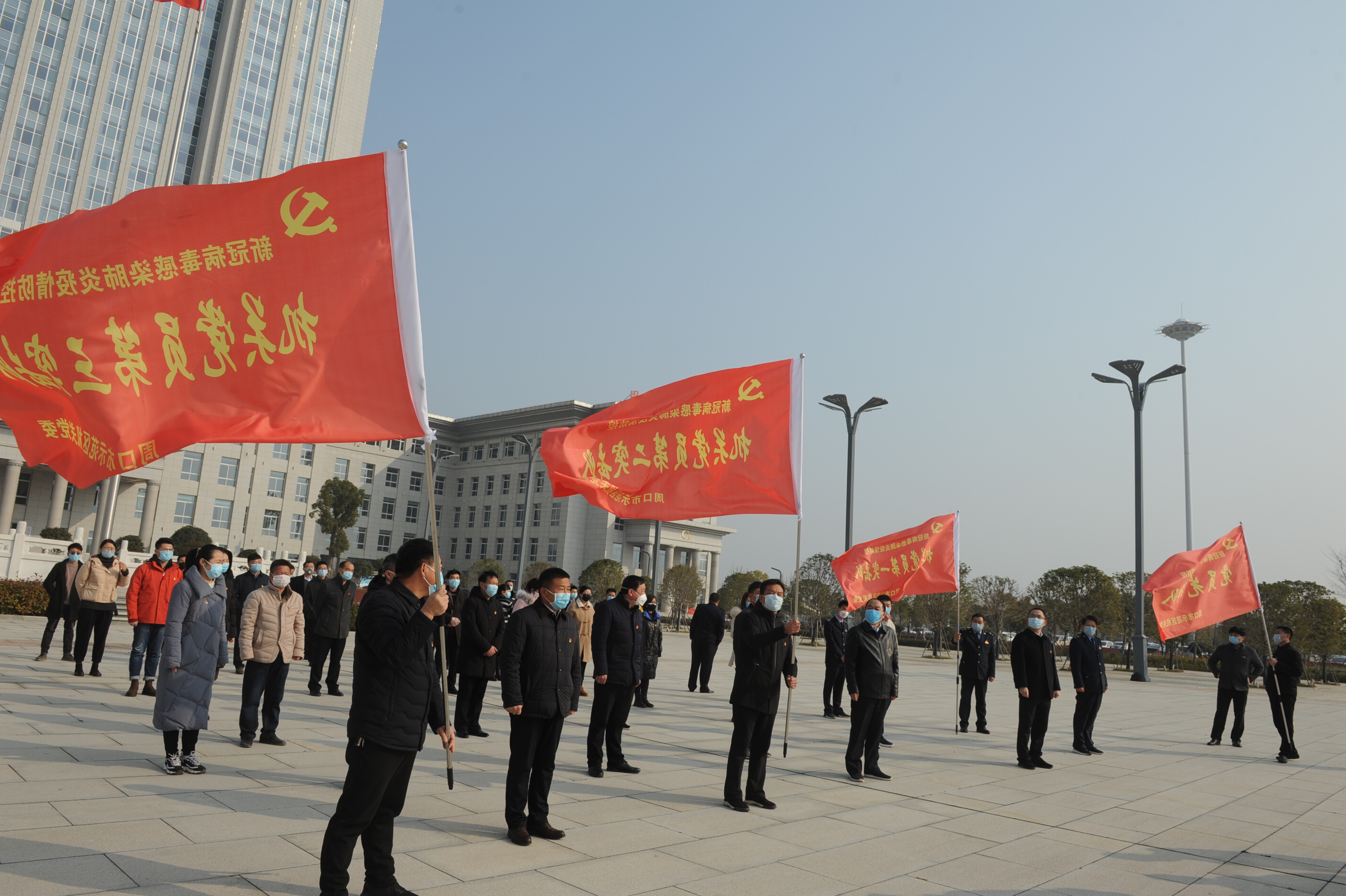 2月3日上午,在國旗下、黨旗前,示范區廣大黨員干部面對黨旗重溫入黨誓詞,充分展示了廣大黨員干部主動請戰到戰“疫”一線的決心和信心。隨后,區機關黨委相關領導向黨員先鋒隊和3個黨員突擊隊授予隊旗,希望他們堅守在一線、圓滿完成疫情防控的各項任務。