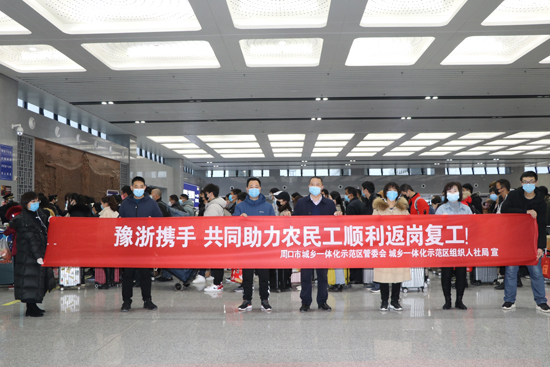 3月1日8時20分,載著116名周口農民工的G4105次返崗高鐵專列,從周口高鐵東站馳往浙江杭州。示范區就業促進和醫療保障局聯合人社局、高鐵站臨時保通辦公室共同協助周口籍農民工赴杭返崗復工,并為他們送上了路上需要的“干糧”。