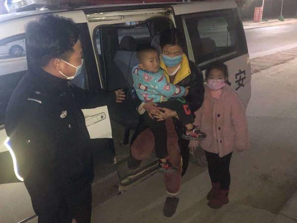 原來早在2月26日晚9點多,馬廠派出所民警劉華偉和輔警王以鶴、毛明陽例行夜間治安巡邏。在馬廠鎮黃莊行政村,他們遇到崔女士帶著兩個孩子求助,“俺孩兒有病了,快幫幫我們吧。”崔女士哭著對民警說,她騎電動車帶著孩子去看病,沒想到走到半路車沒電了。