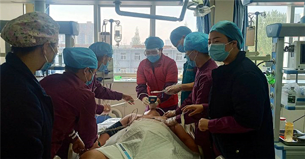 急救迅速展開。6時13分,急救車到達醫院急救中心。救援現場,有著豐富急救經驗的董建洲醫生判斷患者為重度有機磷農藥中毒且伴有呼吸衰竭癥狀。經過一個多小時搶救,患者血壓出現平穩,但呼吸仍然困難,隨時有生命危險。