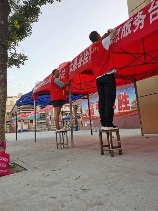 6日下午3時許,鄭雪艷和王作宇二人被安排到太康縣華夏外國語高考考點負責為考生和家長搭建11個茶水棚。“下午3點正是一天中最熱的時候,考點附近也沒有樹蔭。”太康縣網信辦副主任高一麟回憶說,要在天黑之前搭建好11個茶水棚,對于鄭雪艷和王作宇兩人來說并非易事。