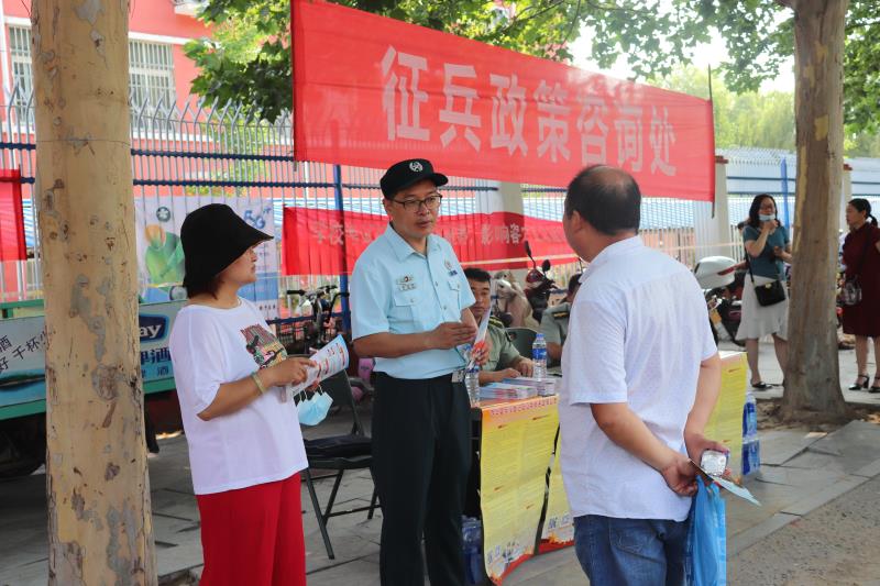 又是一年高考季,征兵宣傳掀高潮。7月7日至8日,西華縣人武部組織城區箕子臺、昆山、媧城街道辦事處武裝部,在全縣3個標準化高考考點,設立征兵咨詢臺、流動宣傳車以及圖板展示等,聯合開展征兵宣傳,引導動員教育莘莘學子獻身國防,到軍營實現人生價值。