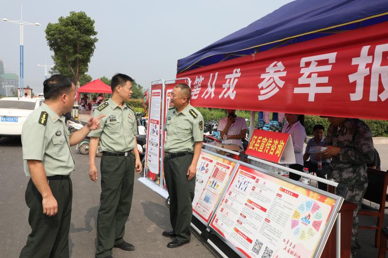 高考期間,淮陽區人武部在轄區6個考場所在學校門口設立征兵宣傳站,向考生和家長進行見縫插針式的征兵宣傳。宣傳現場,“參軍報國盡義務,熱血青年競風采”“當兵最光榮、軍人最美麗”等宣傳標語格外引人注目,內容豐富的征兵宣傳展板一字排開,《參軍入伍明白卡》《大學新生應征入伍宣傳單》等征兵宣傳資料擺放在咨詢臺上一目了然,吸引了眾多的考生和家長駐足觀看,圍著咨詢臺詢問有關征兵事宜。