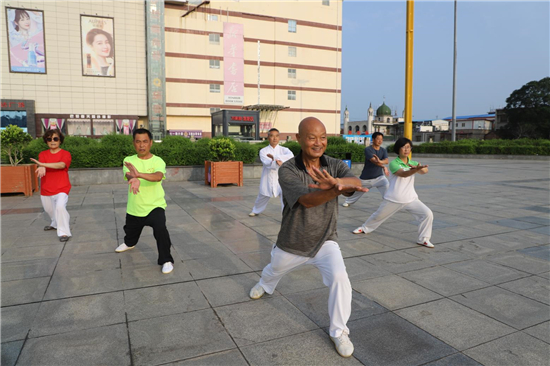 冬練三九,夏練三伏,練出一身真功夫。投伏第一天,周口市武術協會會長張志民帶領會員在五一文化廣場習練新編和氏26式太極拳。記者 王凱 攝