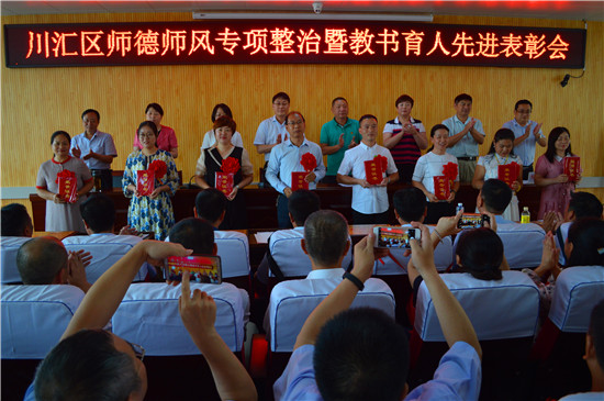 7月24日下午,川匯區教體局召開師德師風專項整治暨教書育人先進表彰會,隆重表彰了15個“教育教學先進單位”和68位愛崗敬業、師德高尚的“優秀業務副校長”、“優秀安全副校長”、“教書育人優秀班主任”、“教書育人優秀教師”。