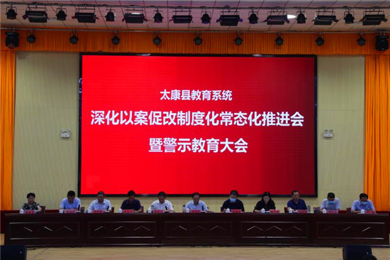會議觀看了違法違紀(jì)典型案例警示教育片;通報了崔世領(lǐng)等6起違紀(jì)違法案件處理情況;宣讀了《太康縣教育體育局以案促改領(lǐng)導(dǎo)組名單》、《太康縣教育體育局以案促改督查組名單》和《太康縣教育體育局關(guān)于在全縣教育系統(tǒng)黨員干部中集中開展以案促改專項工作的方案》;教體局、太康一高、鄉(xiāng)鎮(zhèn)中心校、中小學(xué)校黨員干部代表作表態(tài)發(fā)言。