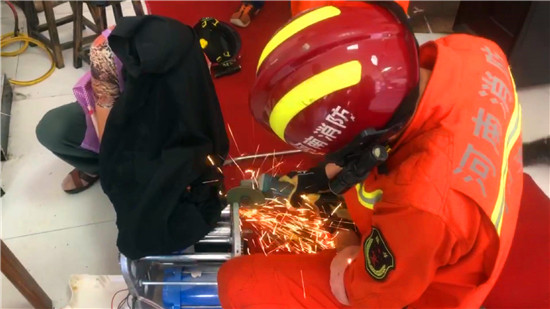 8月11日10時許,商水縣文化路西段一餐飲店內一女店員在操作壓面機時右手小拇指被卡入機器內,急需救援。商水行政路消防站接到指揮中心調令后,緊急調派力量趕往現場救援。經過近20分鐘處置,成功將被困人員救出。