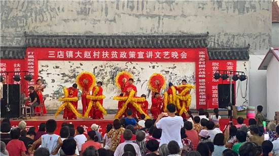 小小戲臺顯真情,脫貧攻堅氣氛濃。8月28日下午,項城市水利局組織舉辦的“勠力同心攜手并進·決戰決勝脫貧攻堅”扶貧政策宣傳文藝演出活動走進三店鎮大趙村,為當地村民帶來一場精彩絕倫的文化盛宴。