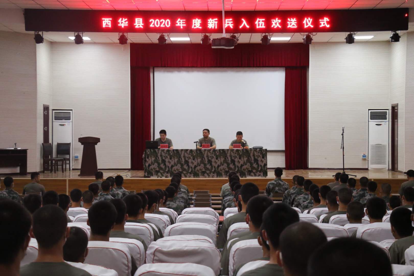 9月10日下午,西華縣在該縣新兵封閉隔離點、縣教師進修學校報告廳,隆重舉行2020年首批入伍新兵歡送會。42名即將奔赴北部戰區某旅的新兵胸帶大紅花,精神飽滿,士氣高昂。