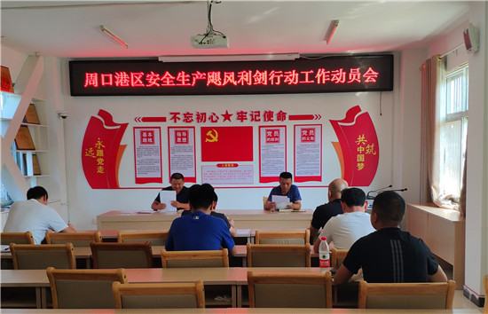 9月18日下午,周口港區召開安全生產颶風利劍行動工作動員會,落實推進安全生產工作。港區安委會辦公室主任周繼增主持會議,港區安委會各成員單位負責人參加會議。